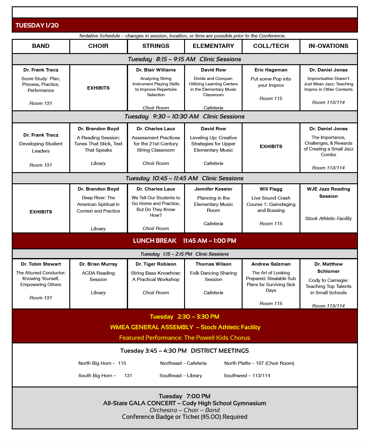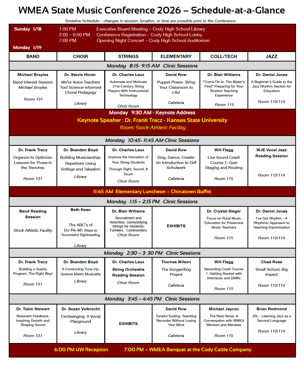 WMEA State Music Conference 2026 – Schedule at a Glance PDF
