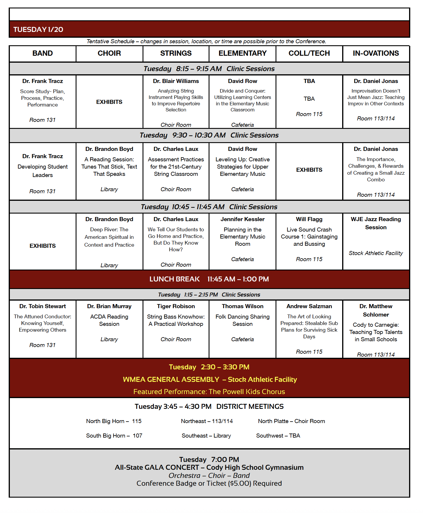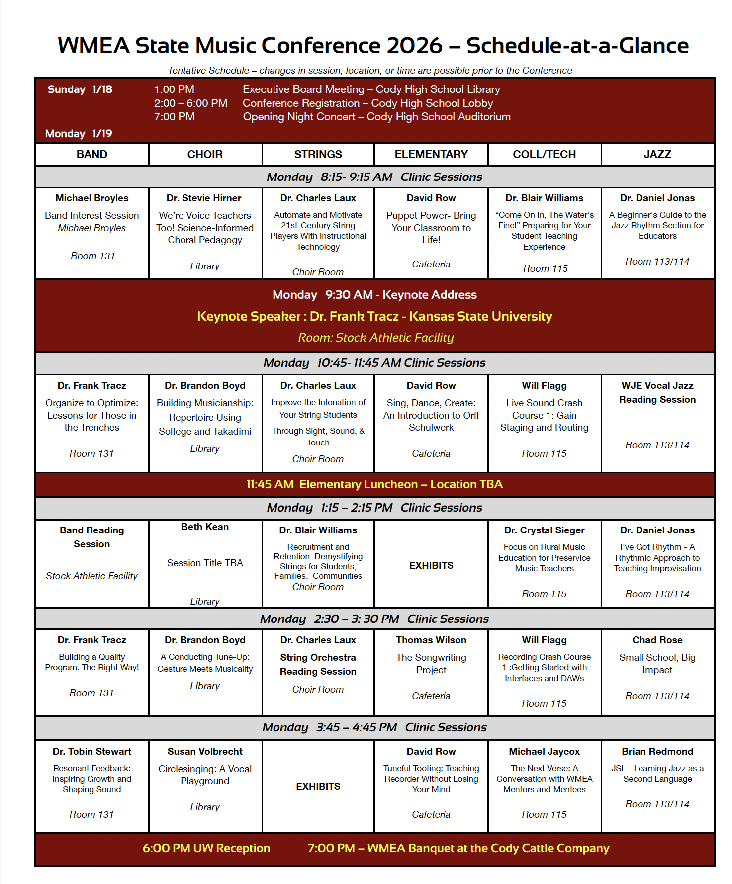 WMEA State Music Conference 2026 – Schedule at a Glance PDF