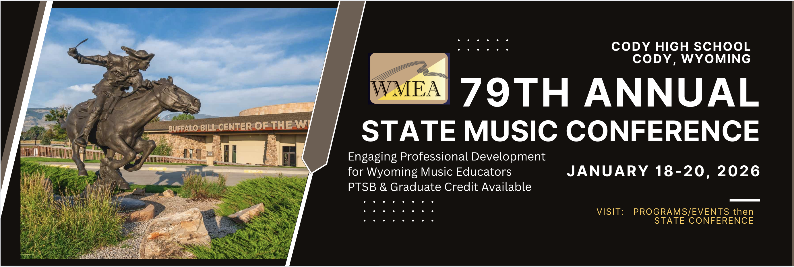 Prospective vendors and exhibitors are invited to submit applications for space at the 79th Annual Wyoming State Music Conference and Wyoming High School All-State Honor Band, Orchestra, and Choir Clinic to be held in Cody, Wyoming on January 18-20, 2026